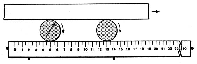 règle, faire rouler la pièce de monnaie, relever la mesure lorsque le repère