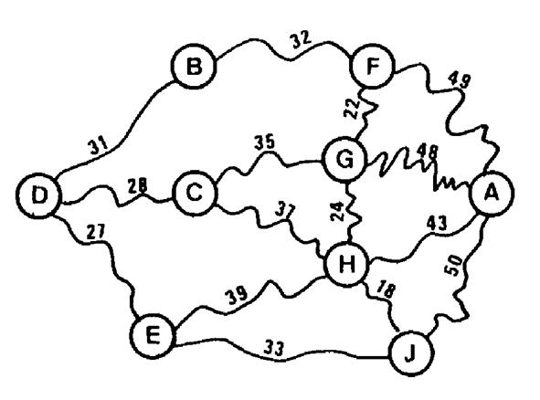 possibles. Exemple : Longueur du chemin « DBFA « = 31 + 32 + 49 = 112