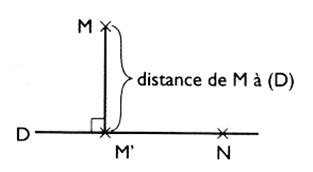 ; M' étant le projeté orthogonal de M sur ( D') . La distance de ( D) à ( D') est égale