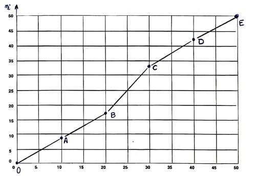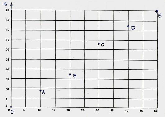 Et ainsi de suite :   Point B :   ( 20 ; 17  )   ;   Point C ( 30 ; 33) ; Point D ( 40 ; 42) ; Point E  ( 50 ;50)