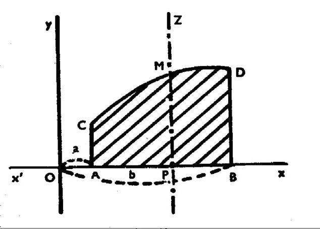 y = f ( x ) » Nous nous proposons d’évaluer l’aire de « ABCD » comprise entre la courbe , l’axe « O x » et les ordonnées