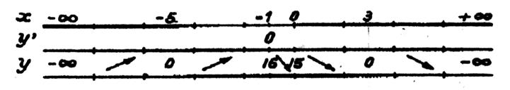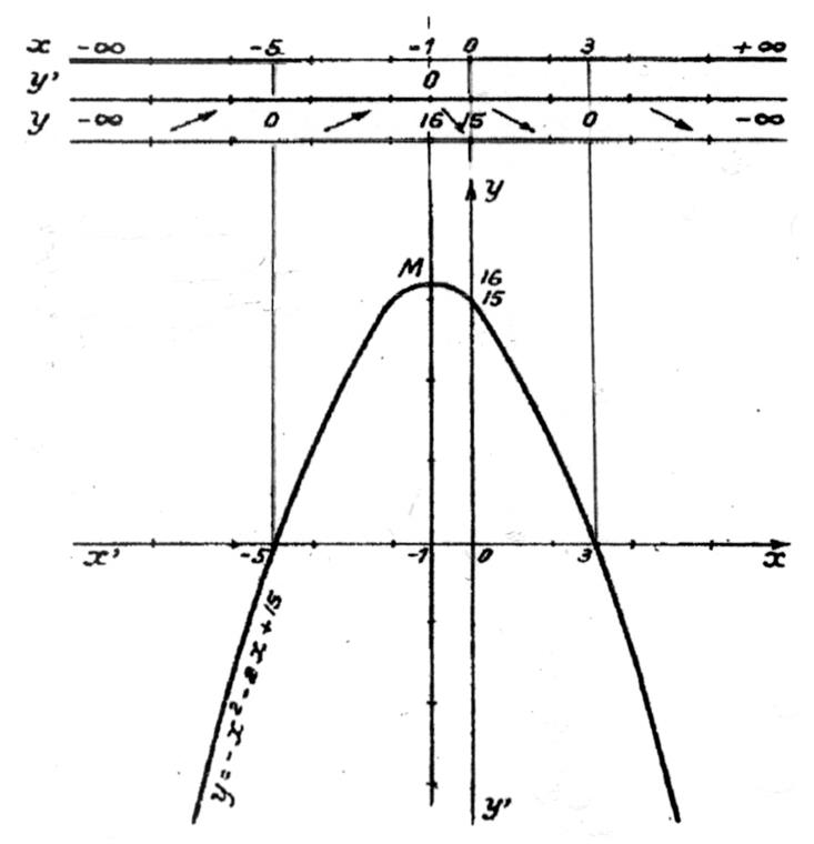si « x= 0 » y = - 0² - 2 fois 0 + 15 ; d’ où y = +15 |