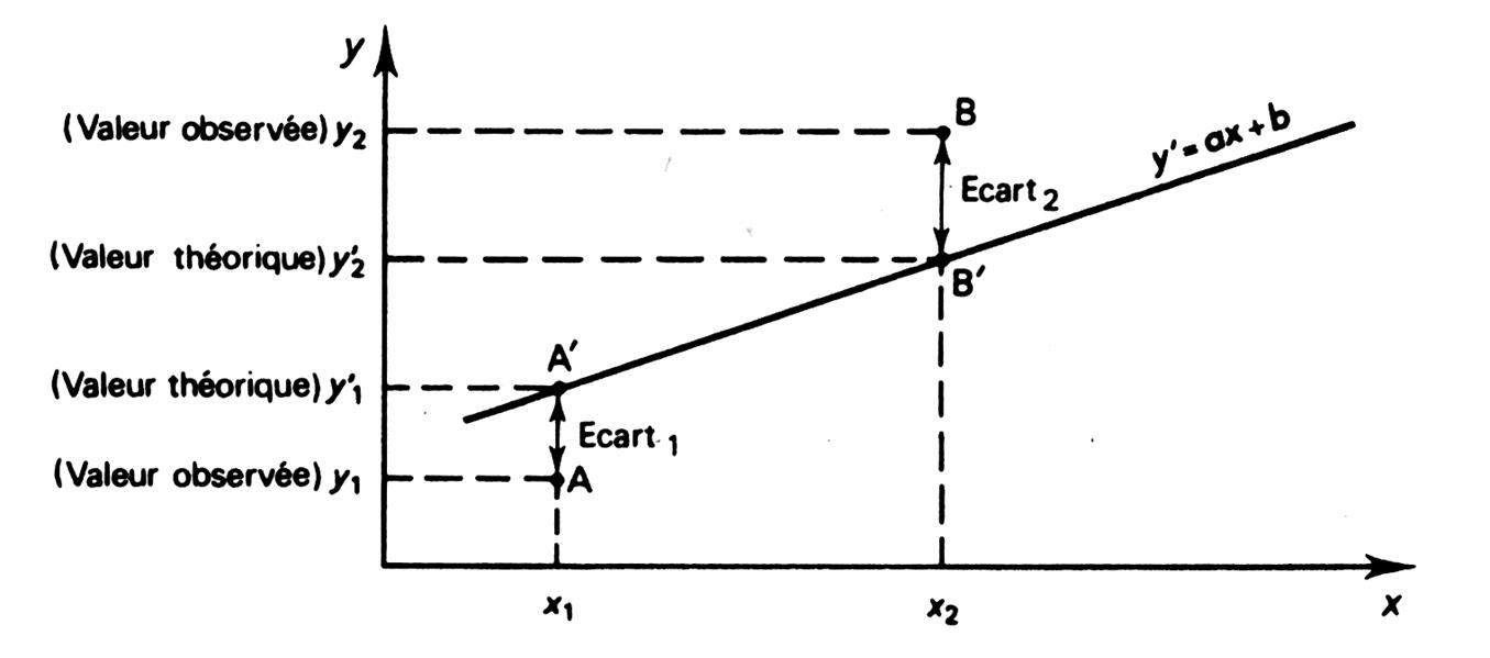 la somme des carrés des écarts est minimale, d’où le nom de « méthode des