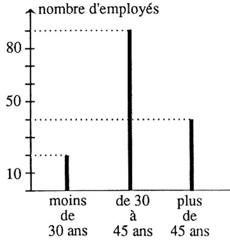 Q1 : Quel est le nombre d’employés de moins de 30 ans ? Q 2 : Quel est le nombre d’employés de plus de 30 ans ? Q3 : Quel est le nombre d’employés de 30 à 45 ans ? Q4 : Quel est le nombre d’employés de plus de 30 à 45 ans ? Q5 : Quel est le nombre d’employés de moins de 45 ans ? Q 6 : Quel est le nombre total d’employés ? Question +++ Quel est , par rapport à ce nombre le pourcentage des employés