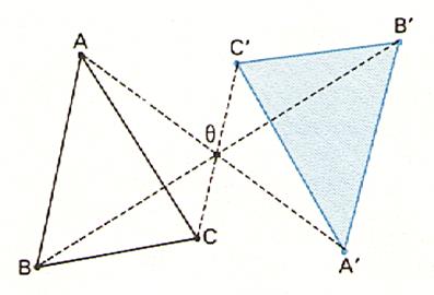 construire le symétrique du polygone ( triangle) par rapport à "O" |