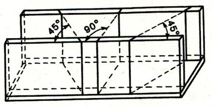 à assembler à 45° . Les fentes servent de guide à une scie . |