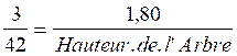 de l’ombre de l’arbre 42 m nous remplaçons dans la relation de proportion :