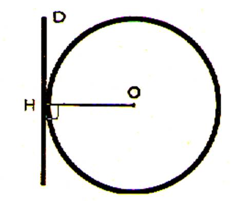 « d » = R le point H est sur le cercle O , or c’est le point de la droite D le