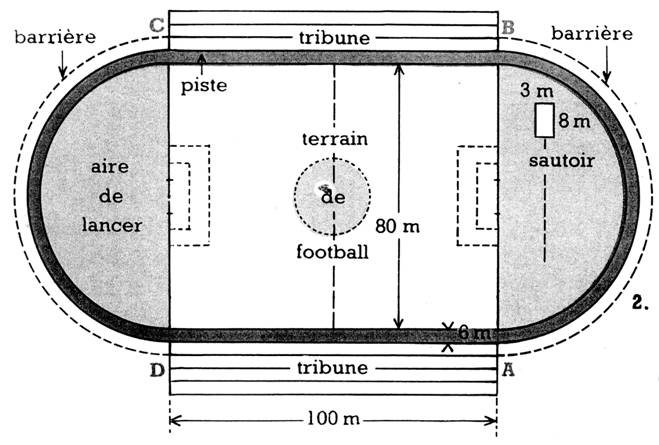 longueur du bord extérieur de la piste? 5. Les deux parties droites de la piste sont