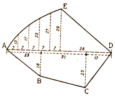 le terrain une ligne droite que l’on prend pour base et des perpendiculaires qui aboutissent aux