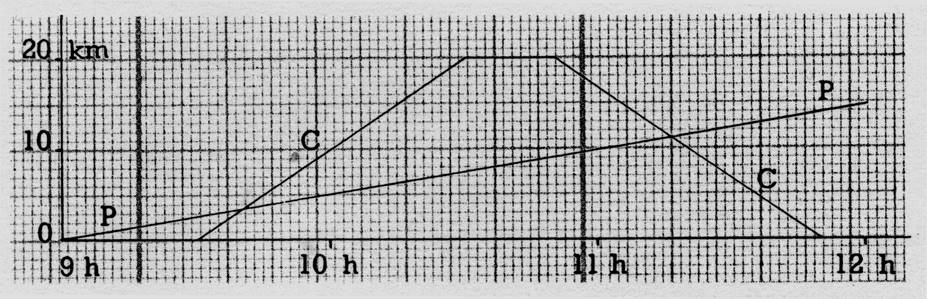 partis du même village, dans la même direction , mais a des heures différentes : 1°) un piéton (P) qui va voir ses parents à 15 km de là , et qui marche