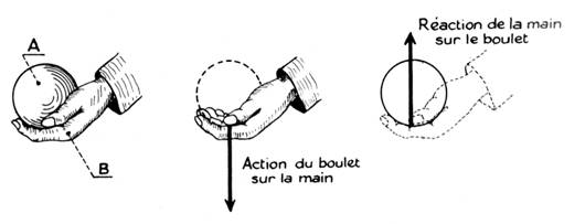 la main exerce sur le boulet une « réaction ». PRINCIPE DE « NEWTON » ( Newton :savant anglais
